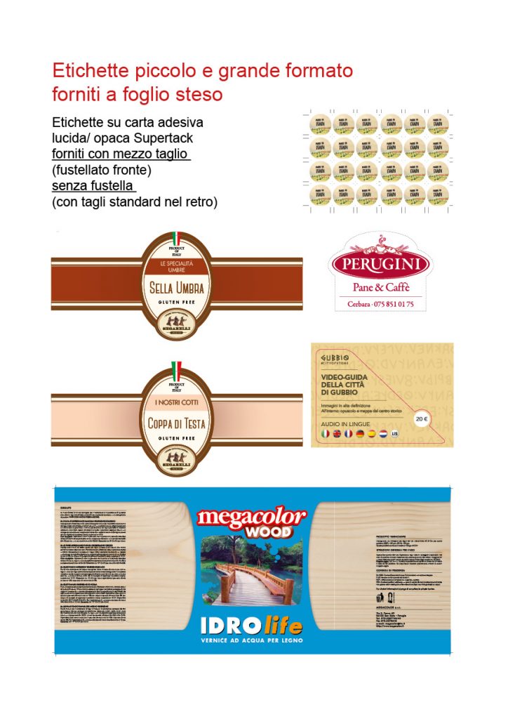 Etichette piccolo e grande formato fornite a foglio steso & in Bobina Pubblicitarie e Alimentari